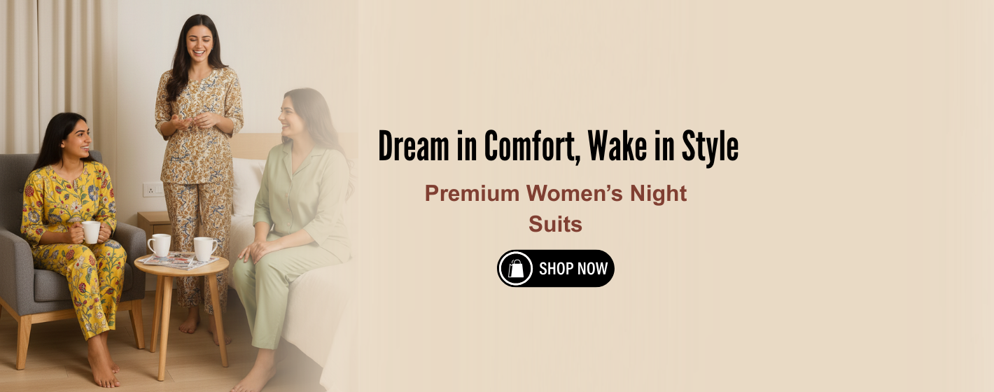 Women’s Cotton Floral Print Night Suit Set – Yellow Loungewear Kurta & Pant