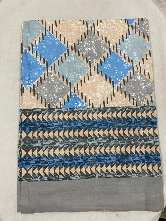 Premium Cotton Double Bedsheet with Pillow Covers – Geometric Blue & Beige Print