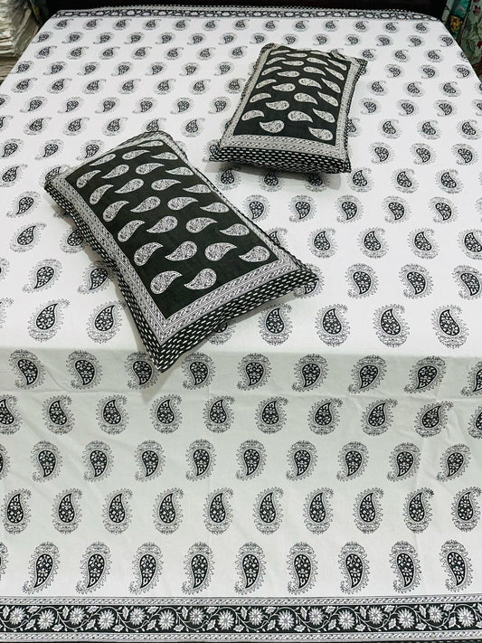 Premium Cotton Double Bedsheet with Pillow Covers (100*108) – Paisley Print, Soft & Breathable Fabric