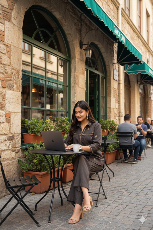 Brown Cotton Embroidered Co-ord Set for Women – Elegant Two-Piece Indo-Western Outfit