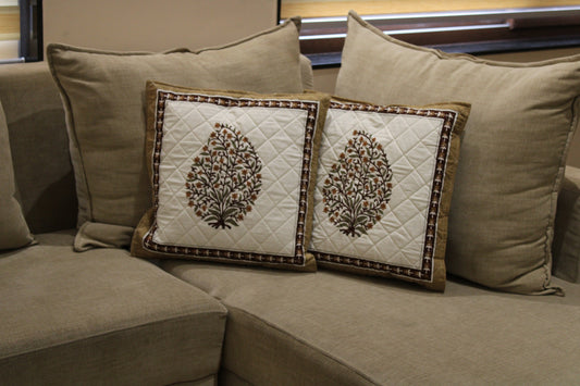 Handcrafted White & Green Floral Quilted Cushion Cover