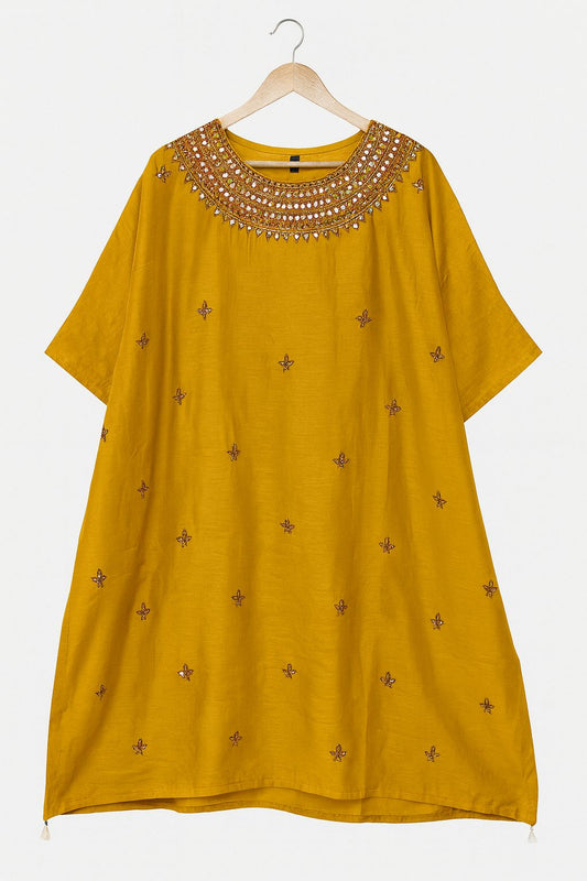 Designer Mustard Yellow Embroidered Kaftan with Red Straight Pants – Festive Ethnic Set for Women