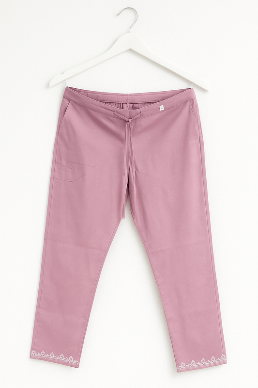 Pastel Mauve Embroidered Cotton Kurti Set with Dupatta – Elegant 3 Piece Ethnic Wear for Women