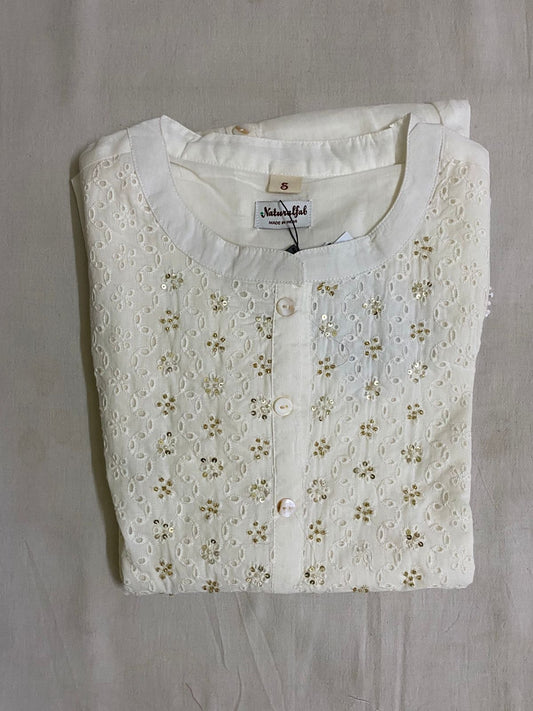Elegant Off-White Chikankari Short Kurti – Pure Cotton Comfort