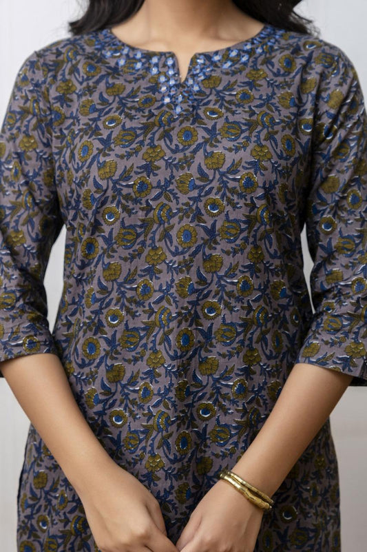 Elegant Grey & White Floral Printed Cotton Kurti for Women