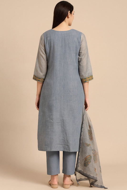 Women’s Grey Khadi Palazzo Pants – High Waist Wide-Leg Trousers | Handwoven Cotton