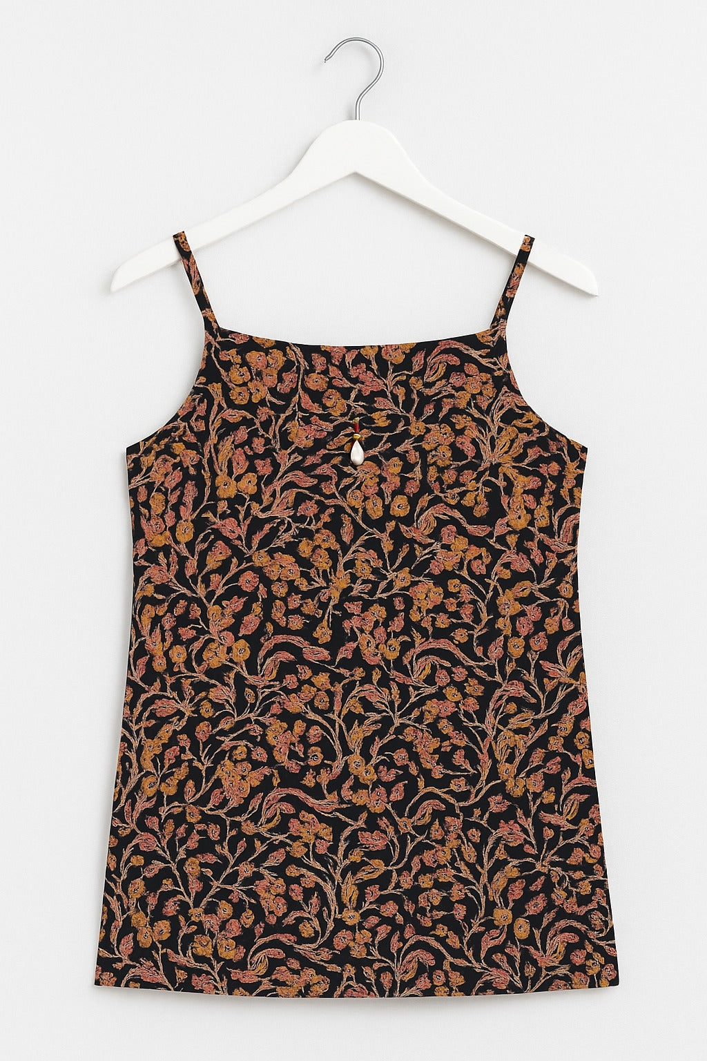 Step out in effortless elegance with this black cotton sleeveless short kurti, beautifully designed with rich rust-orange floral hand block prints. Crafted from lightweight cotton, it offers unmatched comfort and breathability for summer. The strappy silhouette, soft fabric, and classic ethnic charm make it a versatile piece for everyday wear or travel styling.