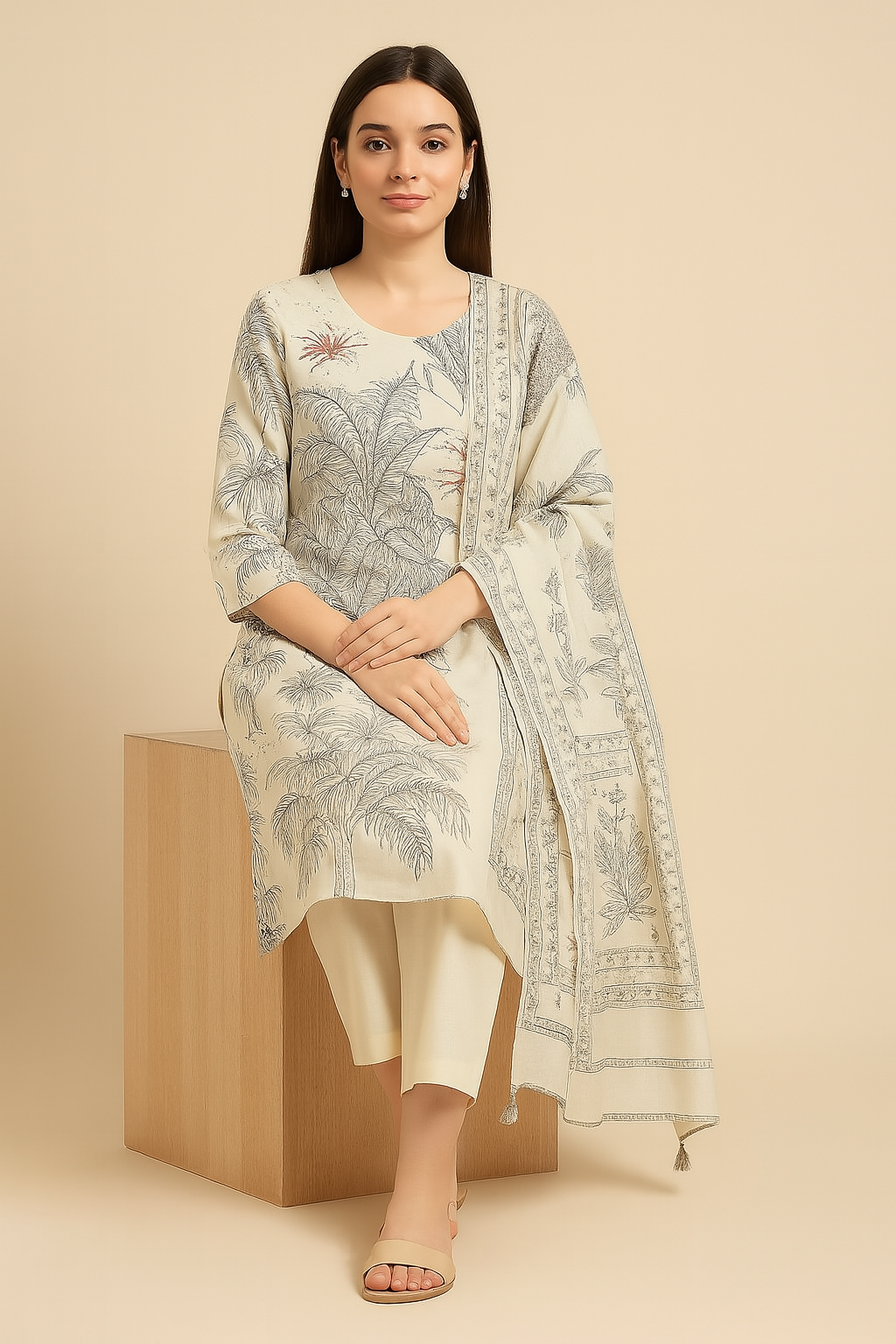 Botanical Print Kurti Set with Matching Dupatta – Elegant Ethnic Wear