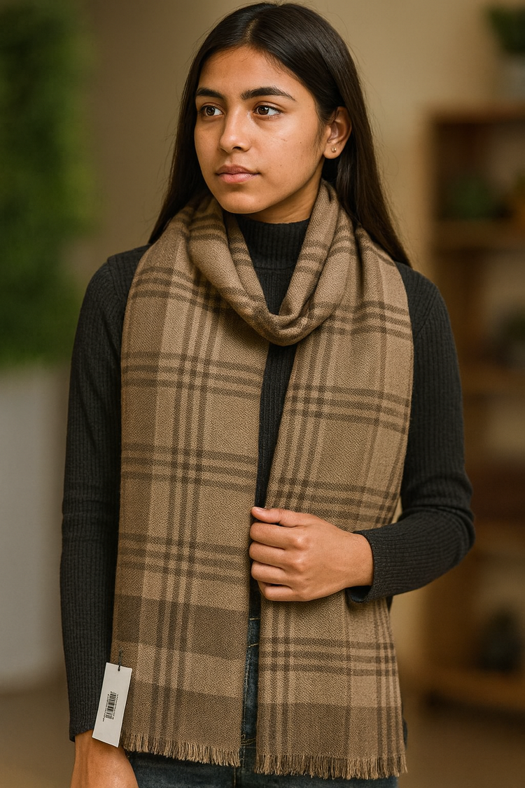 Stay warm in style with this Brown Checked Woollen Stole from Natural Fab, designed to add elegance and comfort to your winter wardrobe. Crafted from a soft wool blend, this stole features a timeless check pattern in earthy brown and beige tones, making it a versatile accessory for both men and women.