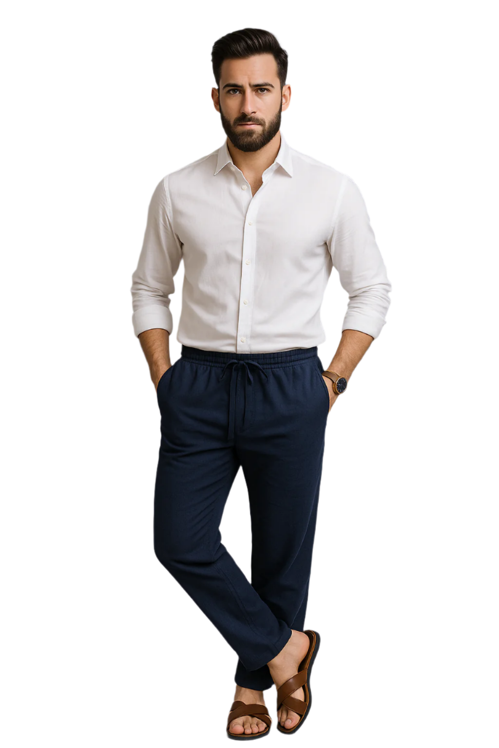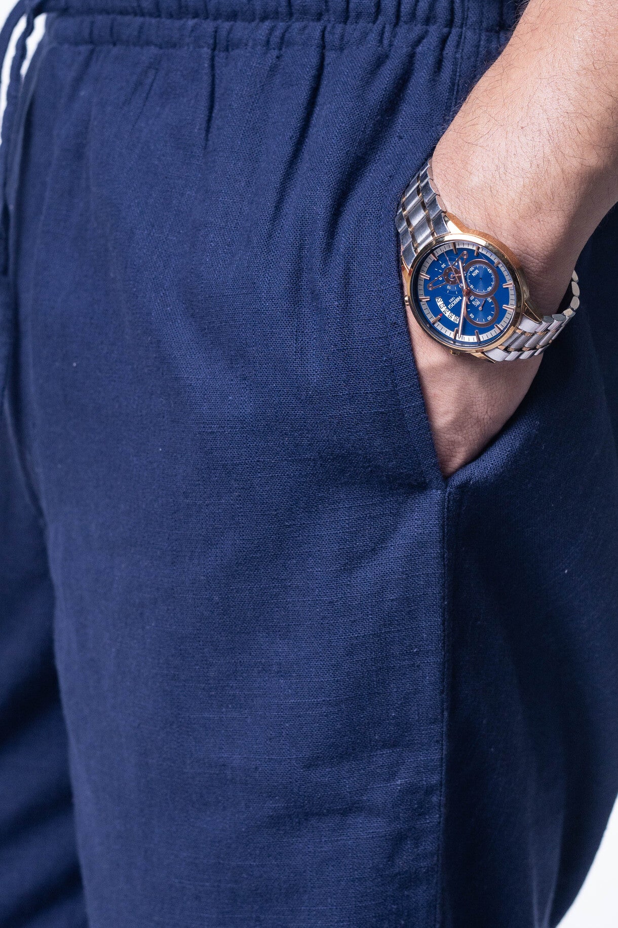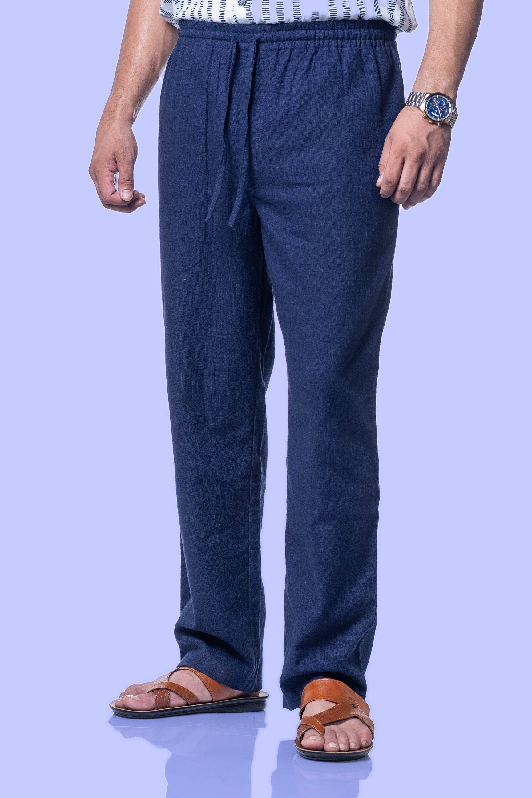 Embrace the versatility of these Men's Blue Khadi Pants, suitable for any season and occasion. Upgrade your wardrobe with a piece that transcends trends, offering both comfort and classic elegance. Make a lasting impression with every step, as you showcase a perfect fusion of style and ease.
