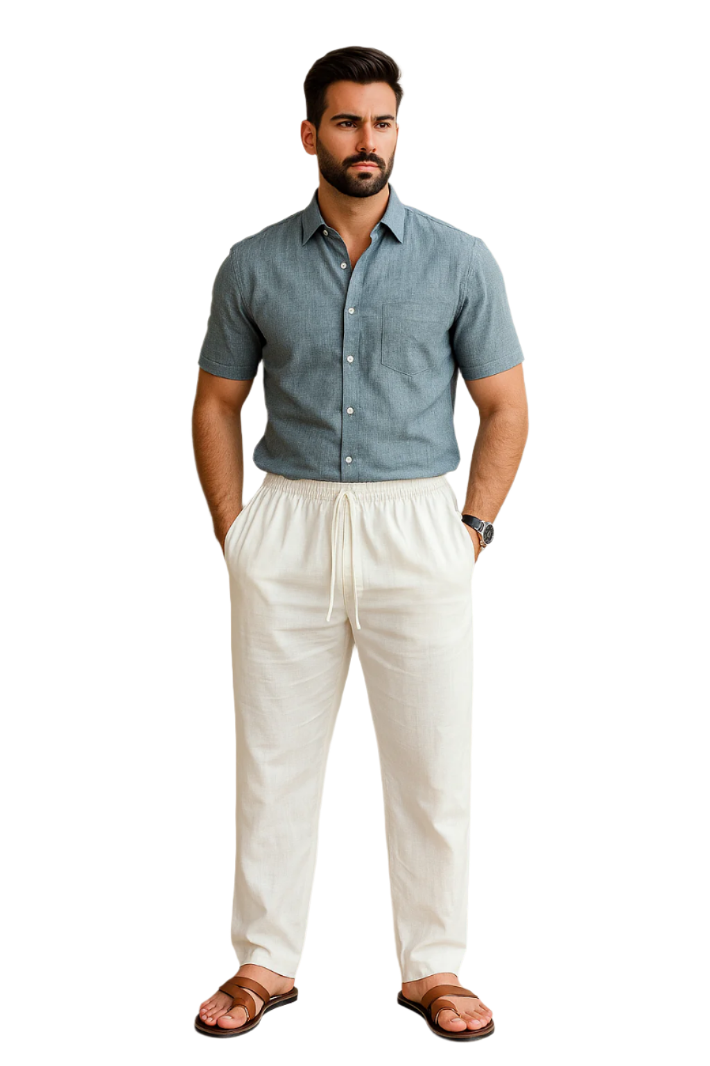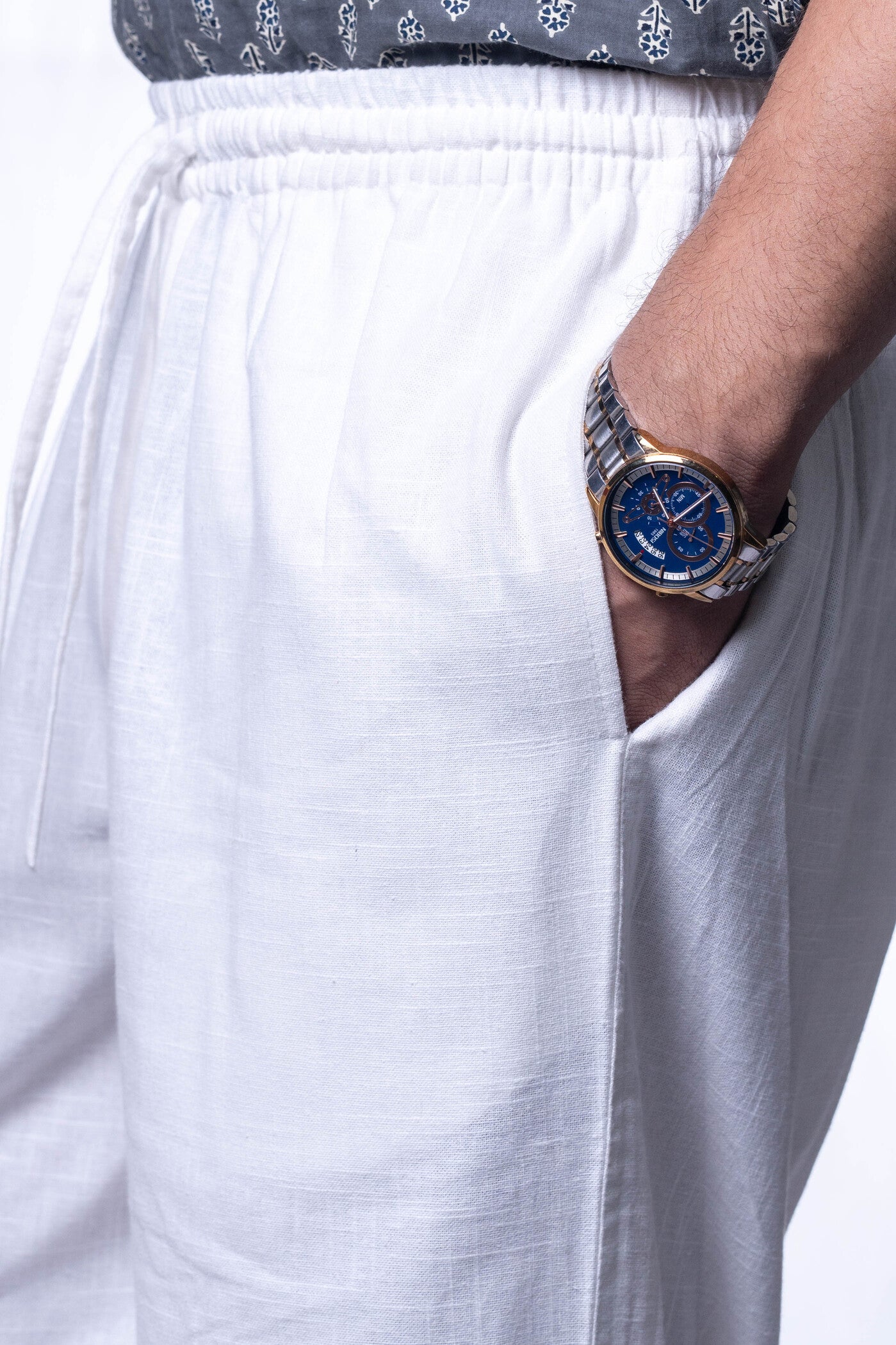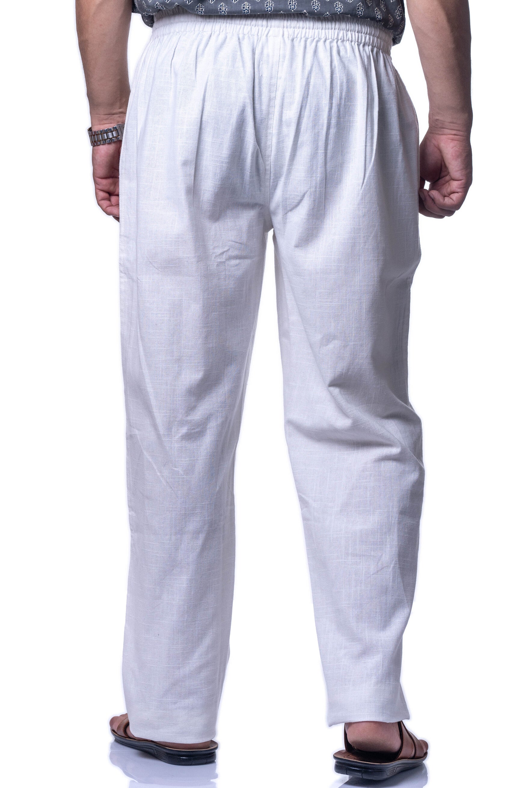 Simplicity and Versatility: These white khadi pants are a symbol of simplicity and versatility. Their classic design allows you to dress them up for formal occasions or create a relaxed, casual look for everyday wear.