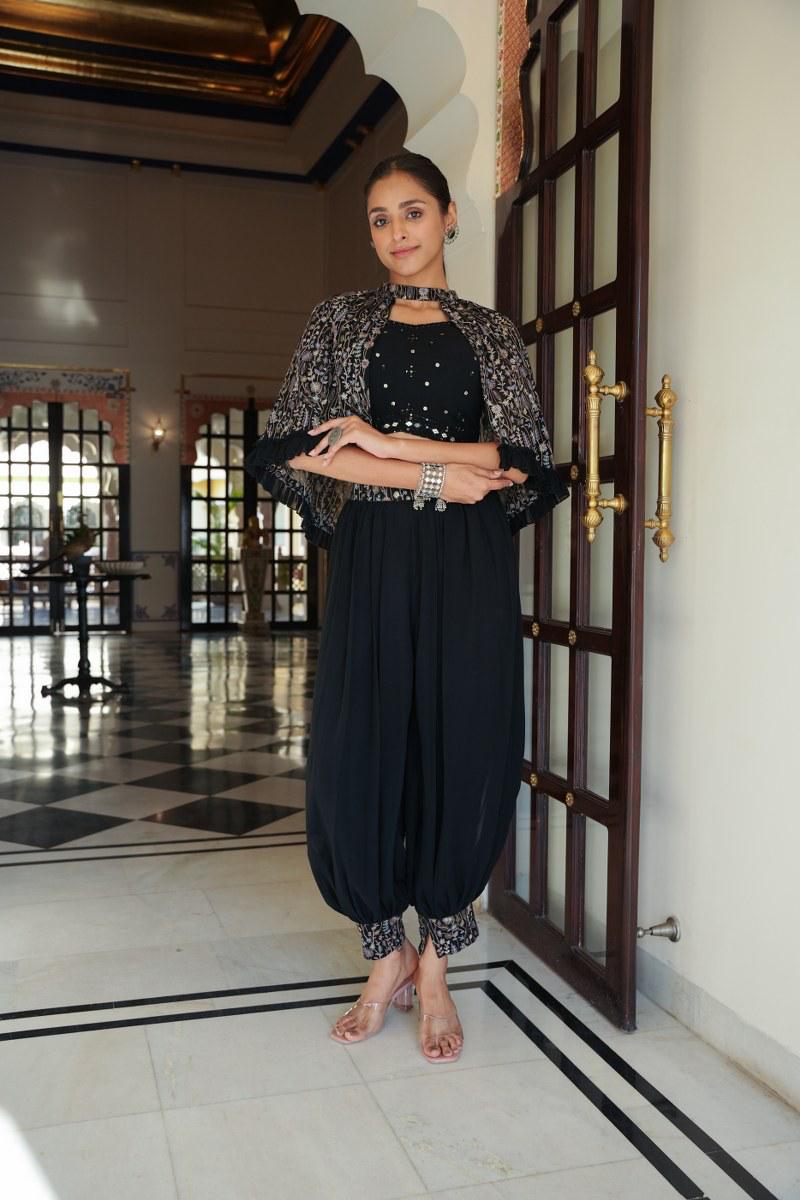 - Dhoti Pants: The matching black dhoti pants provide a trendy and comfortable fit.
