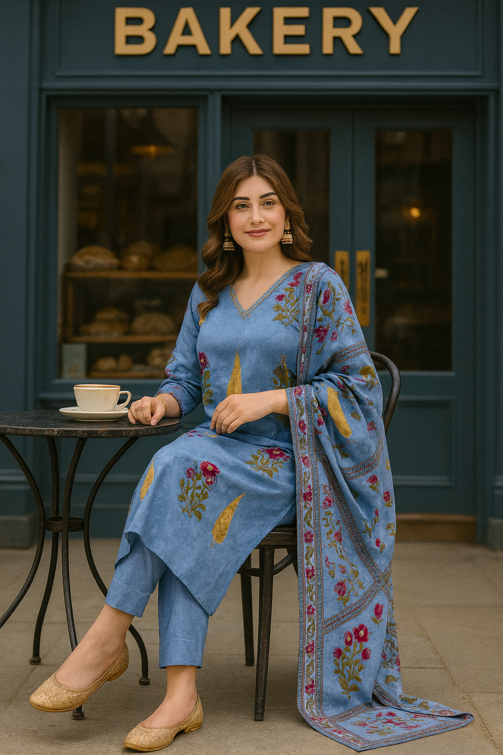 Refresh your ethnic wardrobe with this Elegant Blue Floral Printed Cotton Kurta Set — a perfect blend of tradition and modern charm. Crafted from lightweight and breathable cotton fabric, this set features a beautiful sky blue base adorned with intricate floral and leafy prints, highlighted with subtle embellishments for an elegant touch.