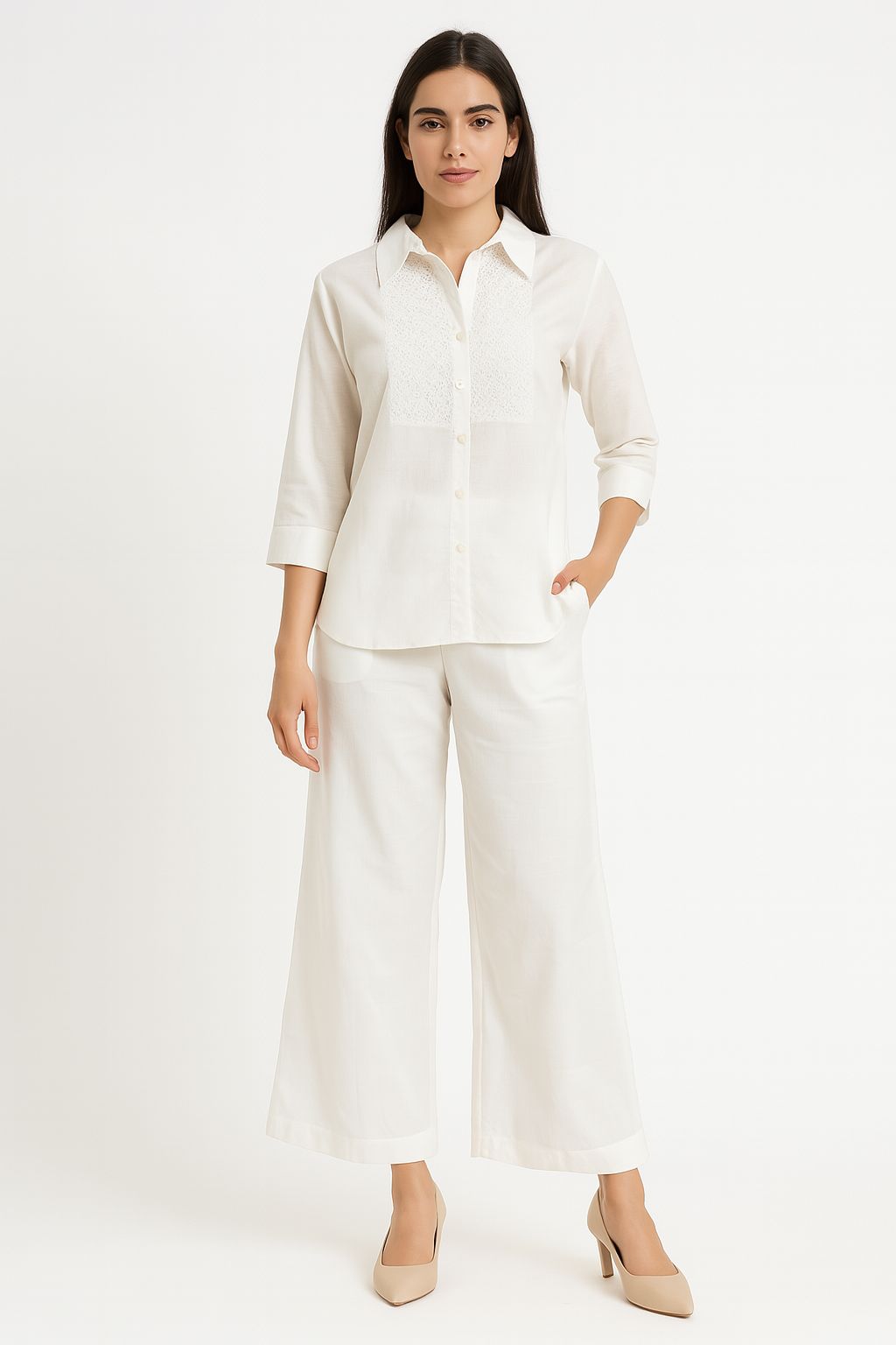 Elegant Off-White Pure Cotton Co-ord Set with Embroidered Shirt