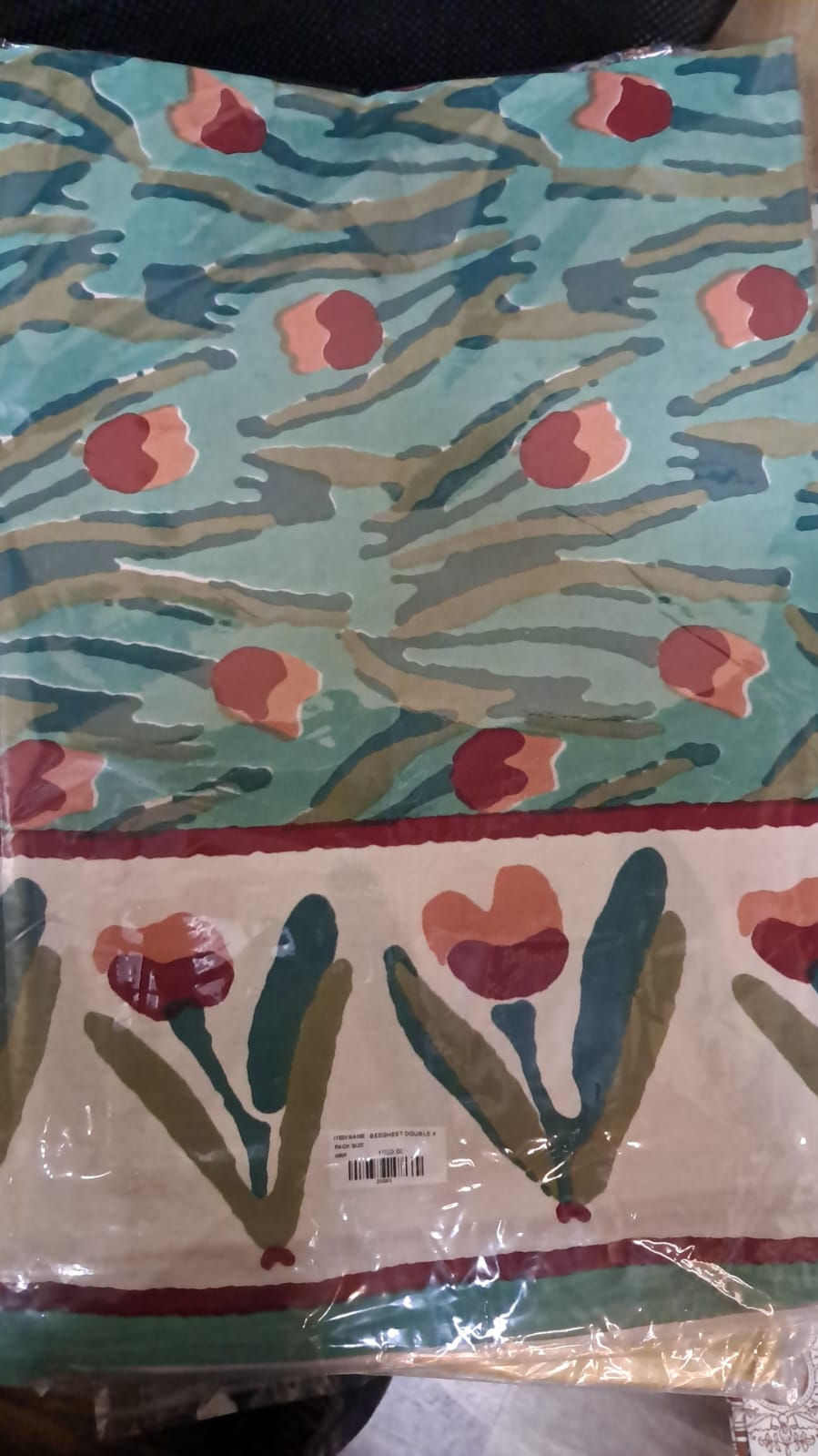 Bring home elegance and comfort with this 100% pure cotton double bedsheet, designed in a beautiful floral handblock-inspired print in soothing green and red tones. Crafted with premium cotton fabric, it ensures breathability, softness, and long-lasting durability. The king-size 100x108 inches bedsheet comes with two matching pillow covers, making it a complete set for your bedroom décor. Perfect for daily use, festive occasions, or as a thoughtful gift.