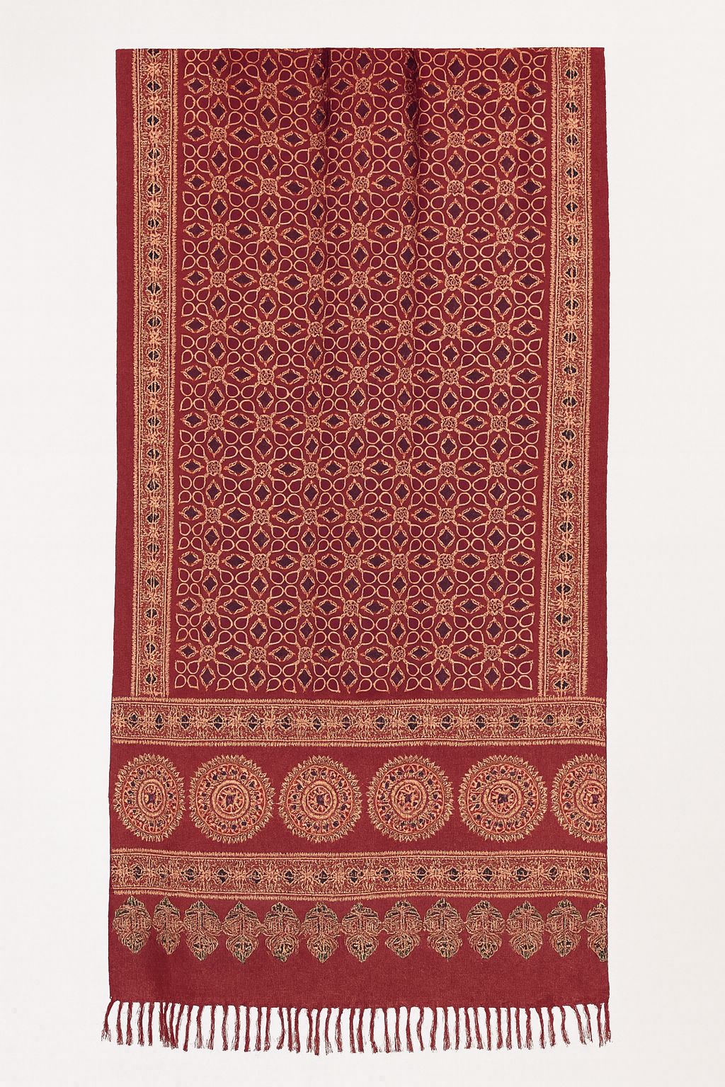 Handcrafted Red Ajrakh Silk Stole | Traditional Circular Motifs & Tassel Detailing