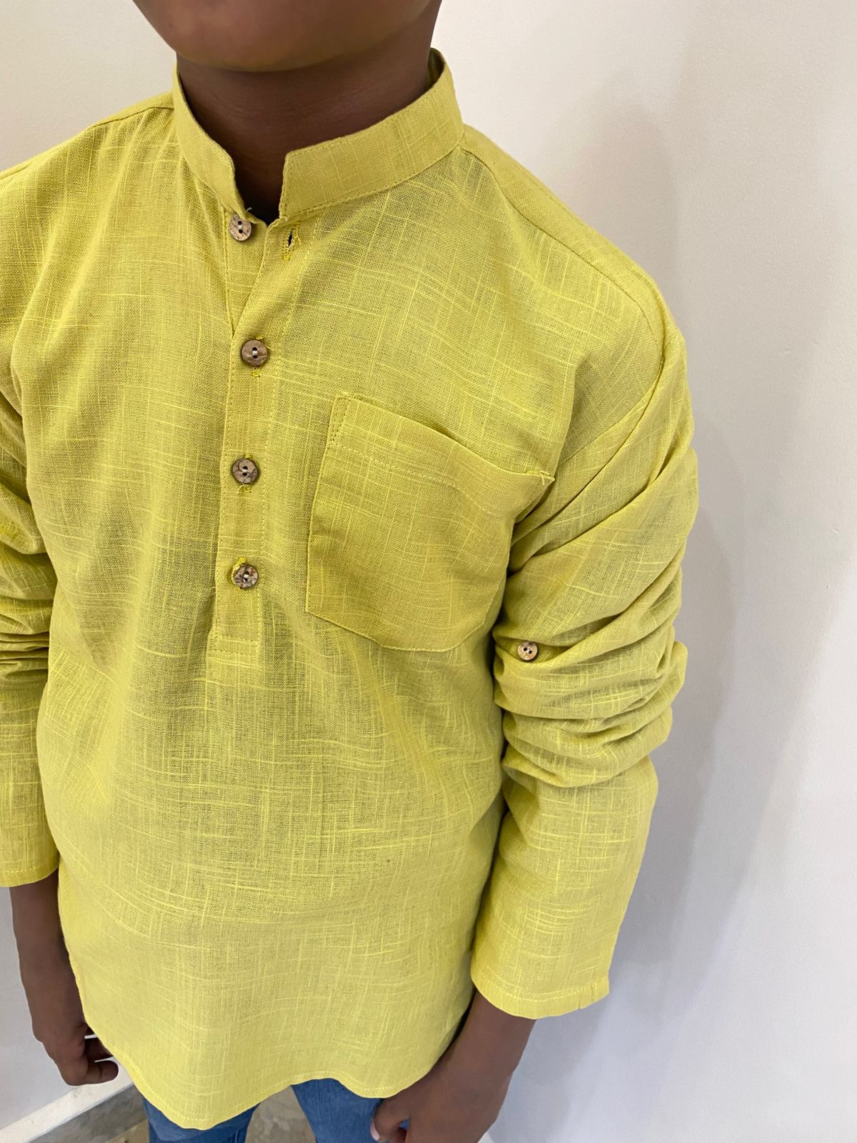 This kurta pairs excellently with jeans, ethnic pyjamas, or chinos to create a polished yet relaxed look for kids