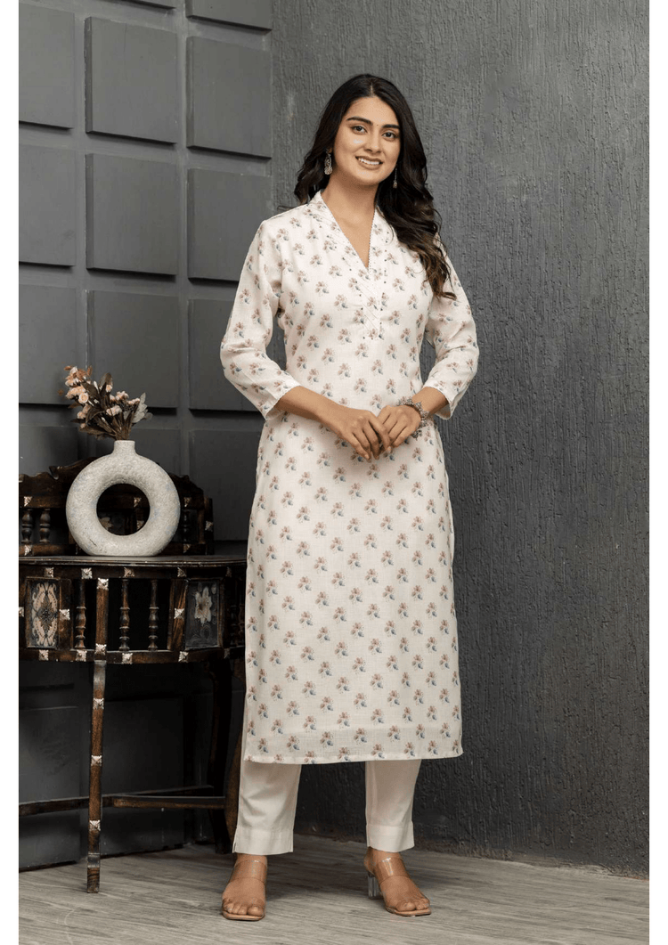Linen Blossom Kurti Pant Dupatta Set | Natural Fab | Premium Linen Ethnic Wear for Women