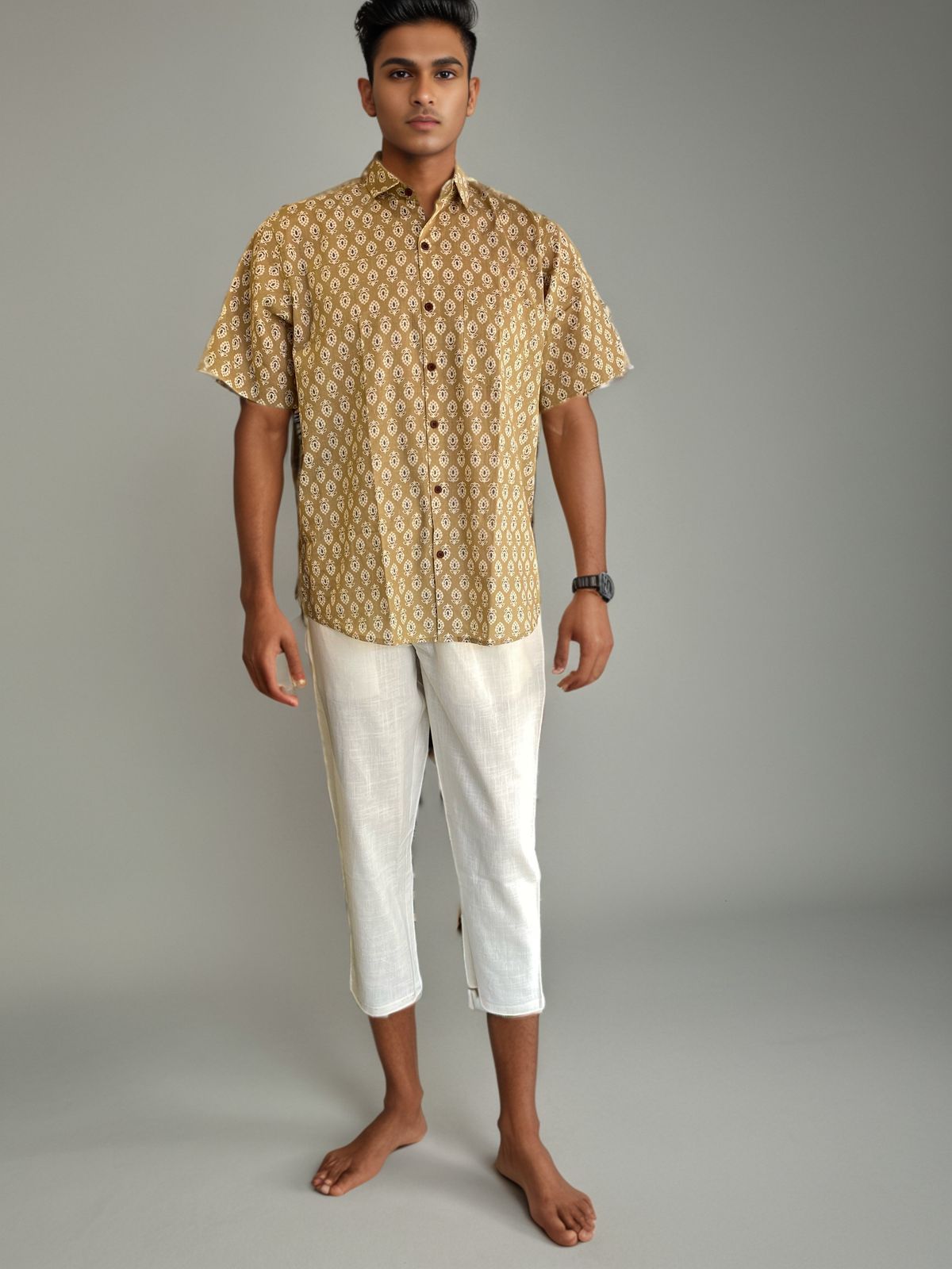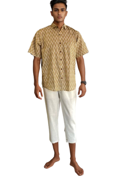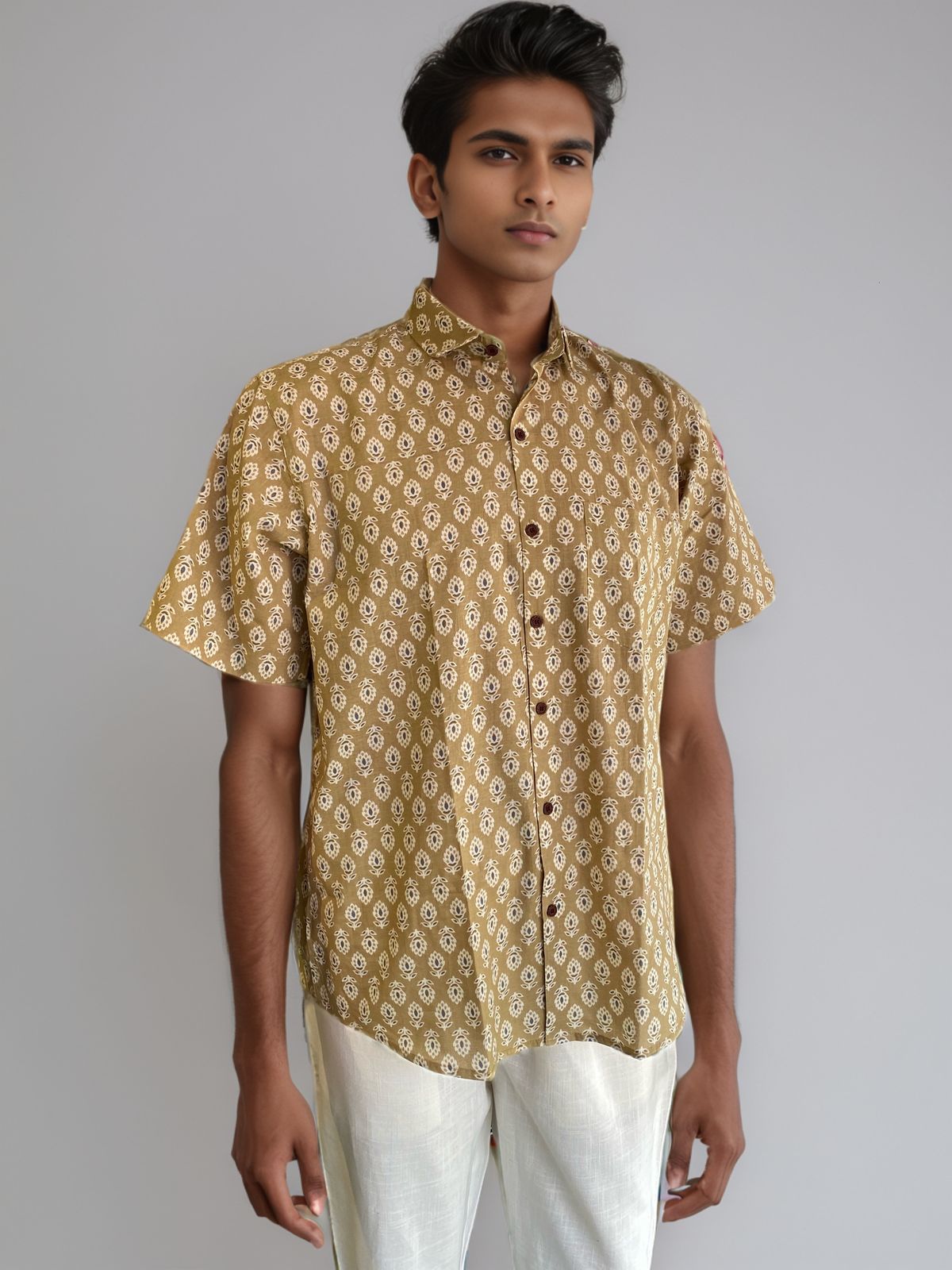 Men’s Ethnic Block Print Cotton Shirt – Earthy Elegance by Natural Fab