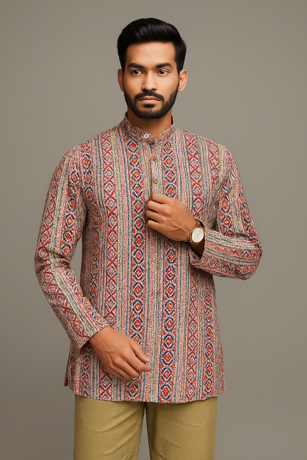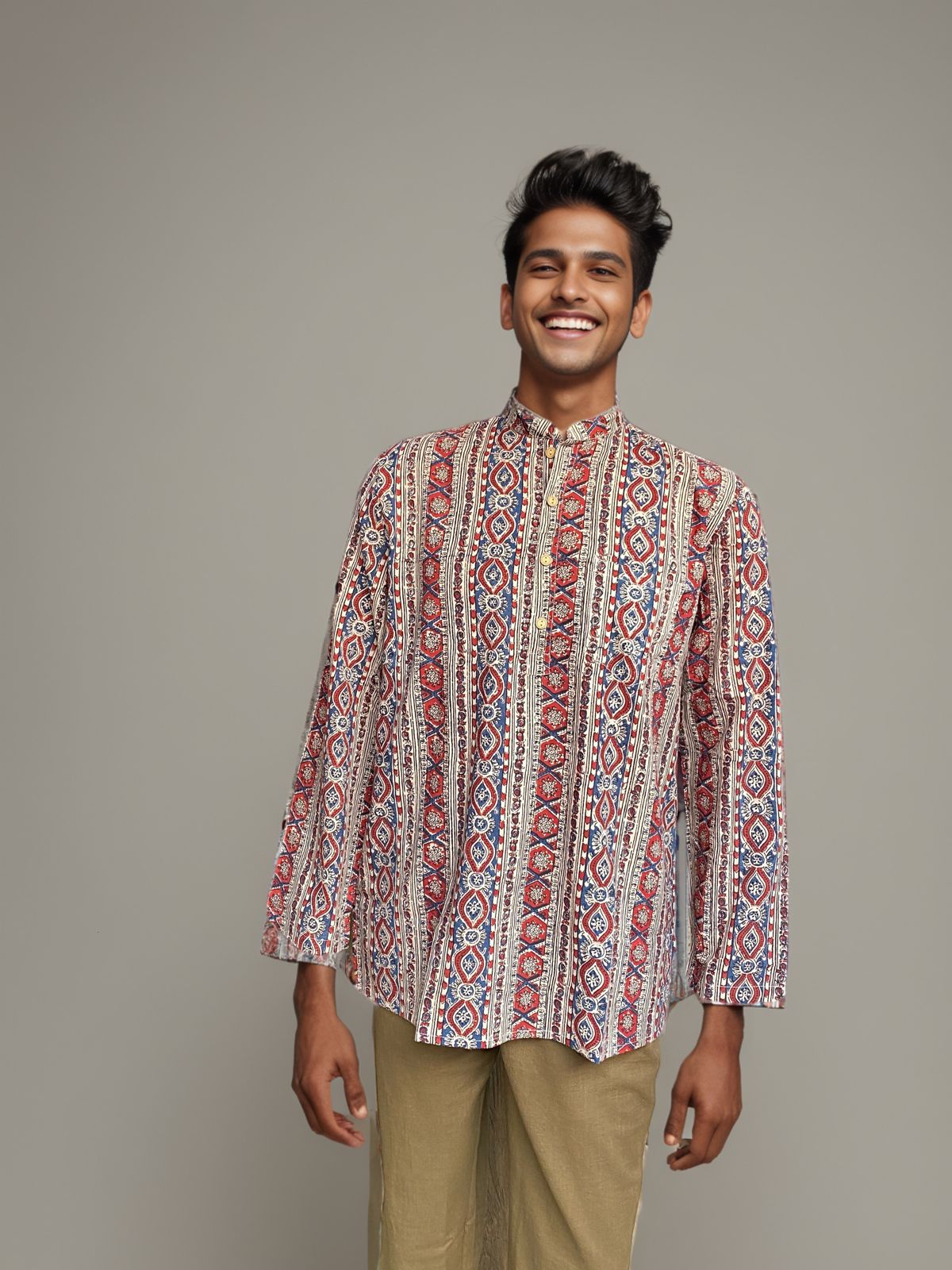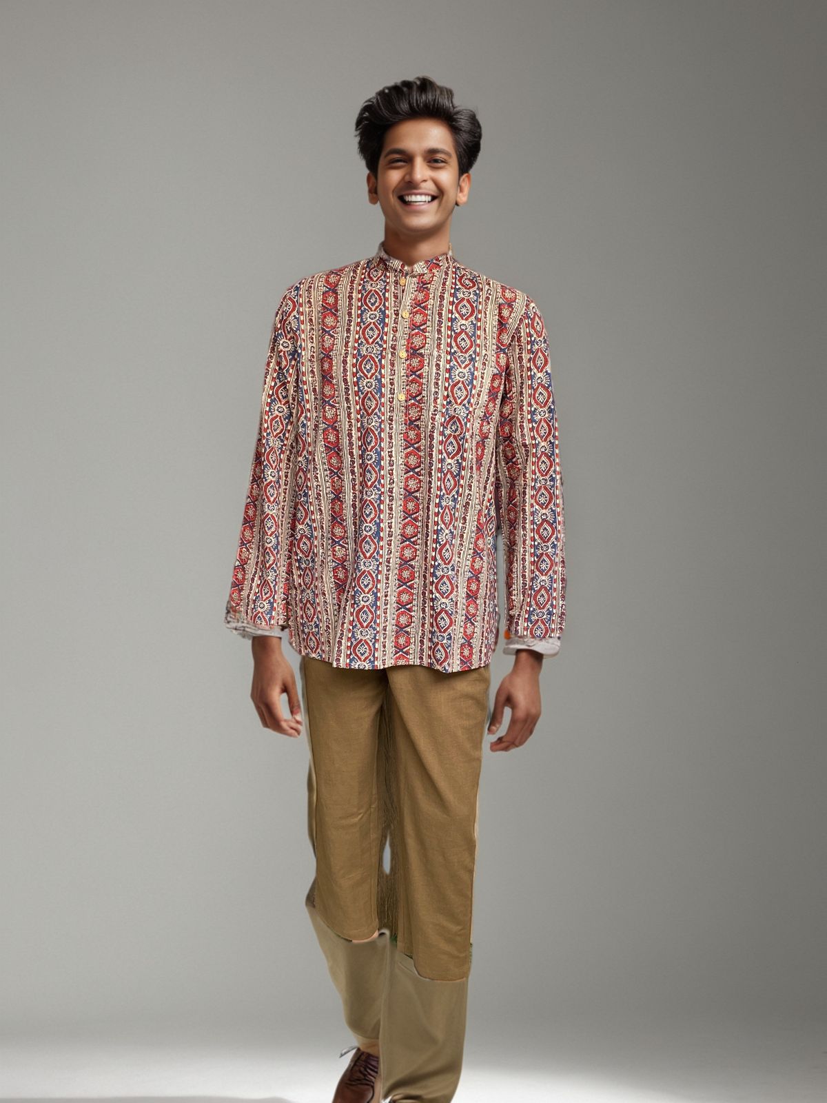 Men’s Multicolor Ajrakh-Inspired Printed Cotton Kurta