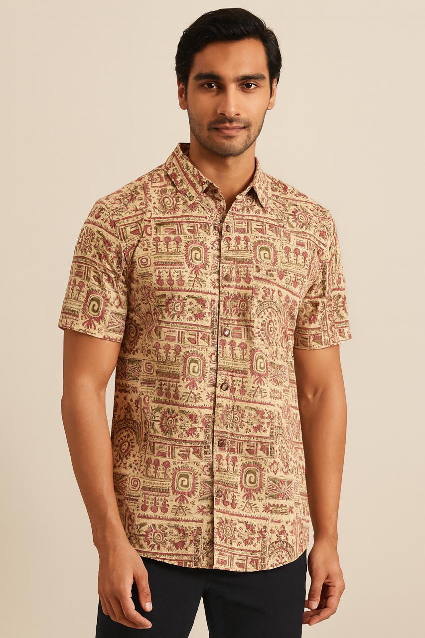 Make a subtle statement with this unique printed shirt, blending classic comfort with standout ethnic charm. Pair it with chinos or denim for a well-put-together look.