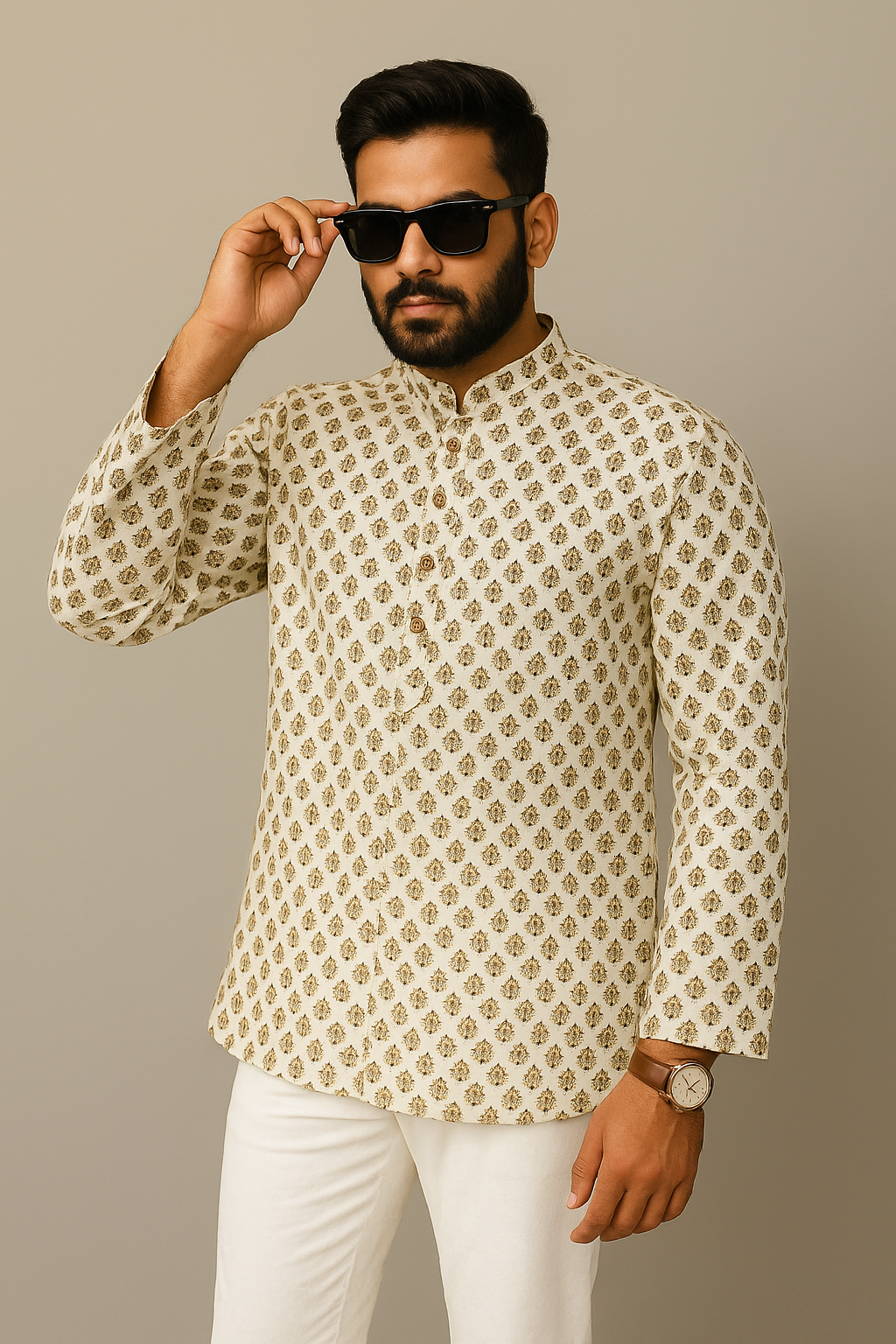 Color: Beige base with intricate black & brown hand-block floral motifs
