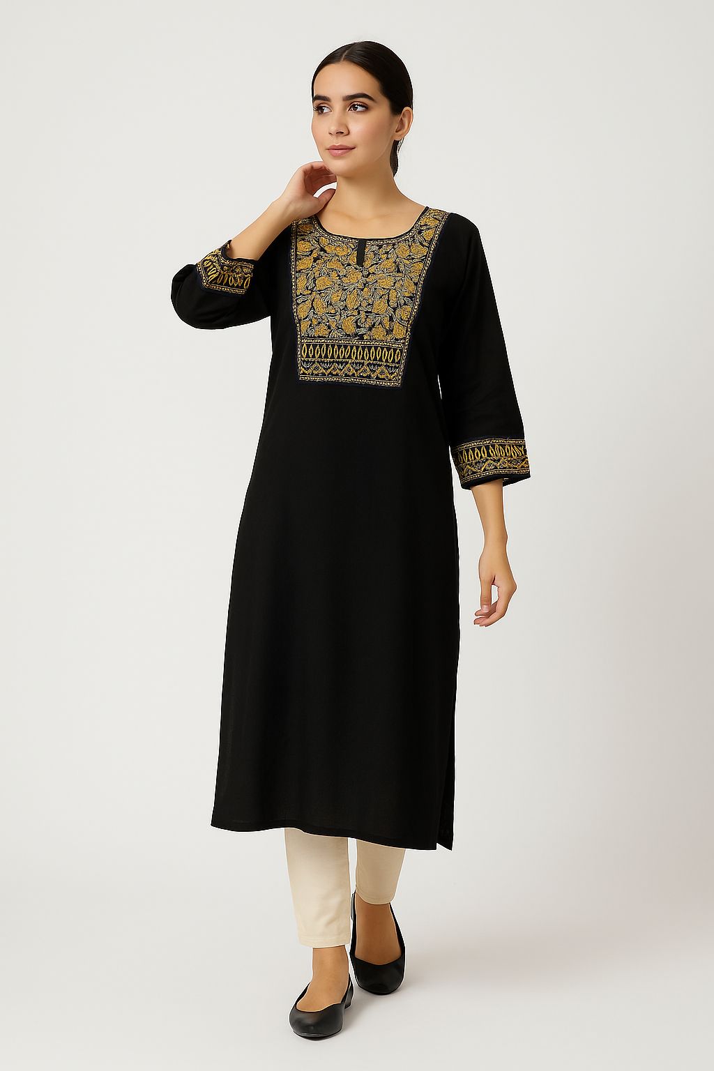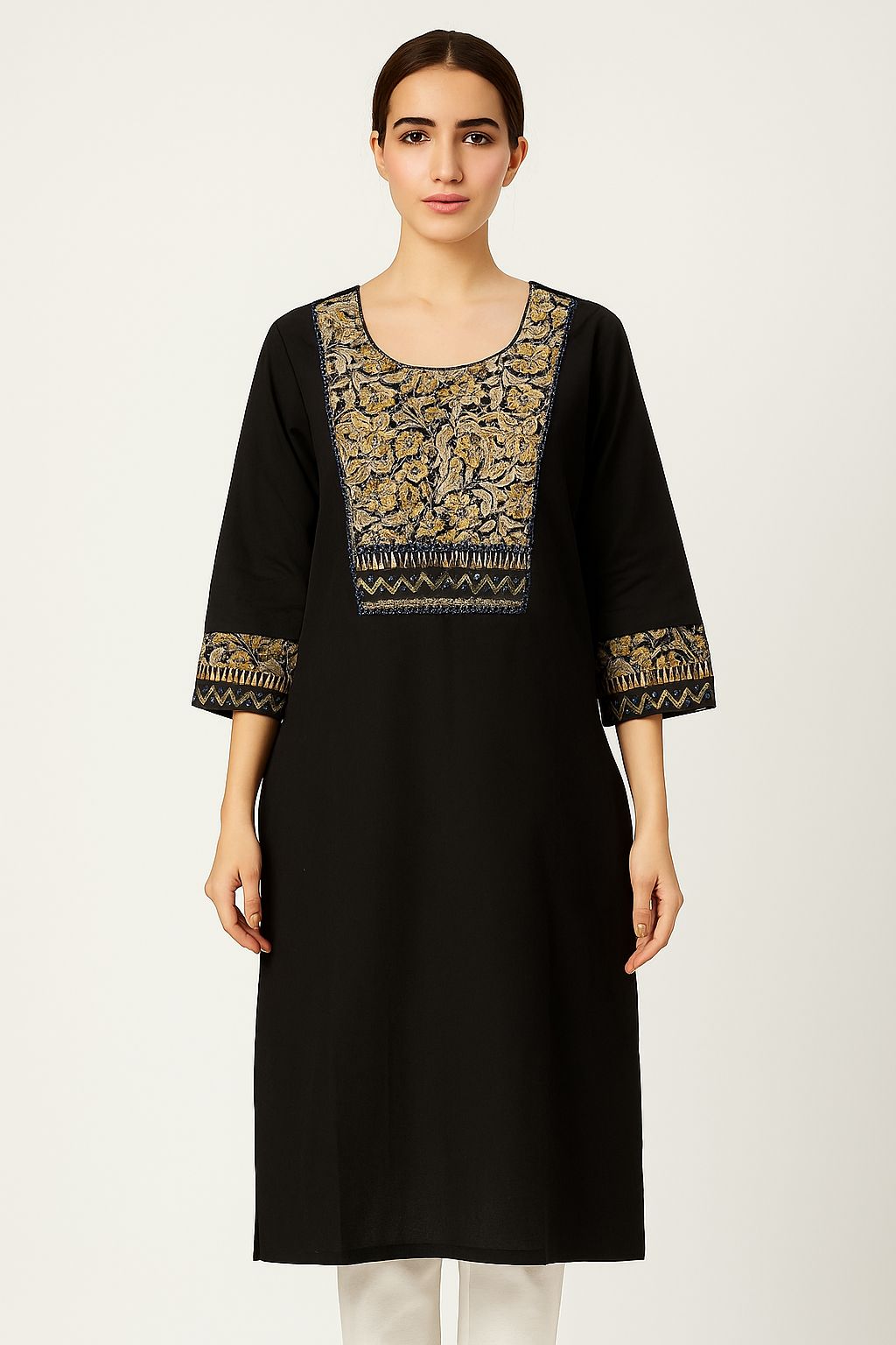 Natural Fab Girls' 100% Pure Cotton Black Kalamkari Print Kurti – Handcrafted Traditional Indian Ethnic Wear