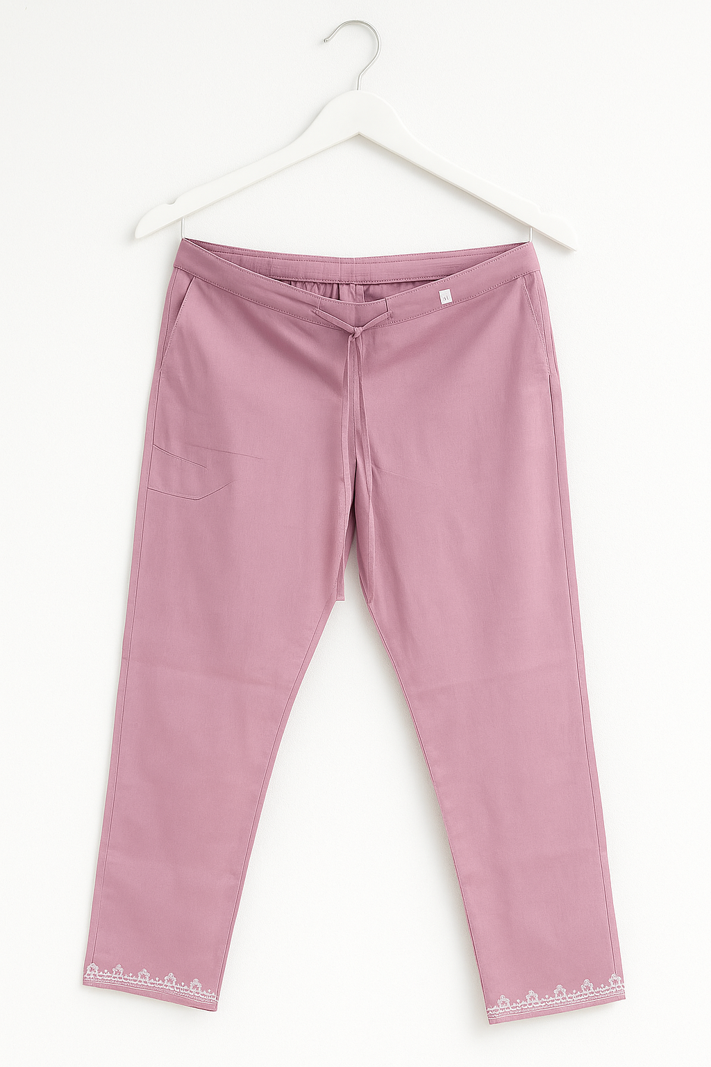 Step into elegance with this pastel mauve 3-piece cotton kurti set, designed for effortless grace and comfort. Crafted from breathable cotton fabric, this set includes a beautifully embroidered straight-cut kurti, matching tapered pants with border detailing, and a delicate dupatta adorned with floral threadwork. The subtle pastel tone enhances your charm, making it perfect for festive occasions, office wear, or casual gatherings.