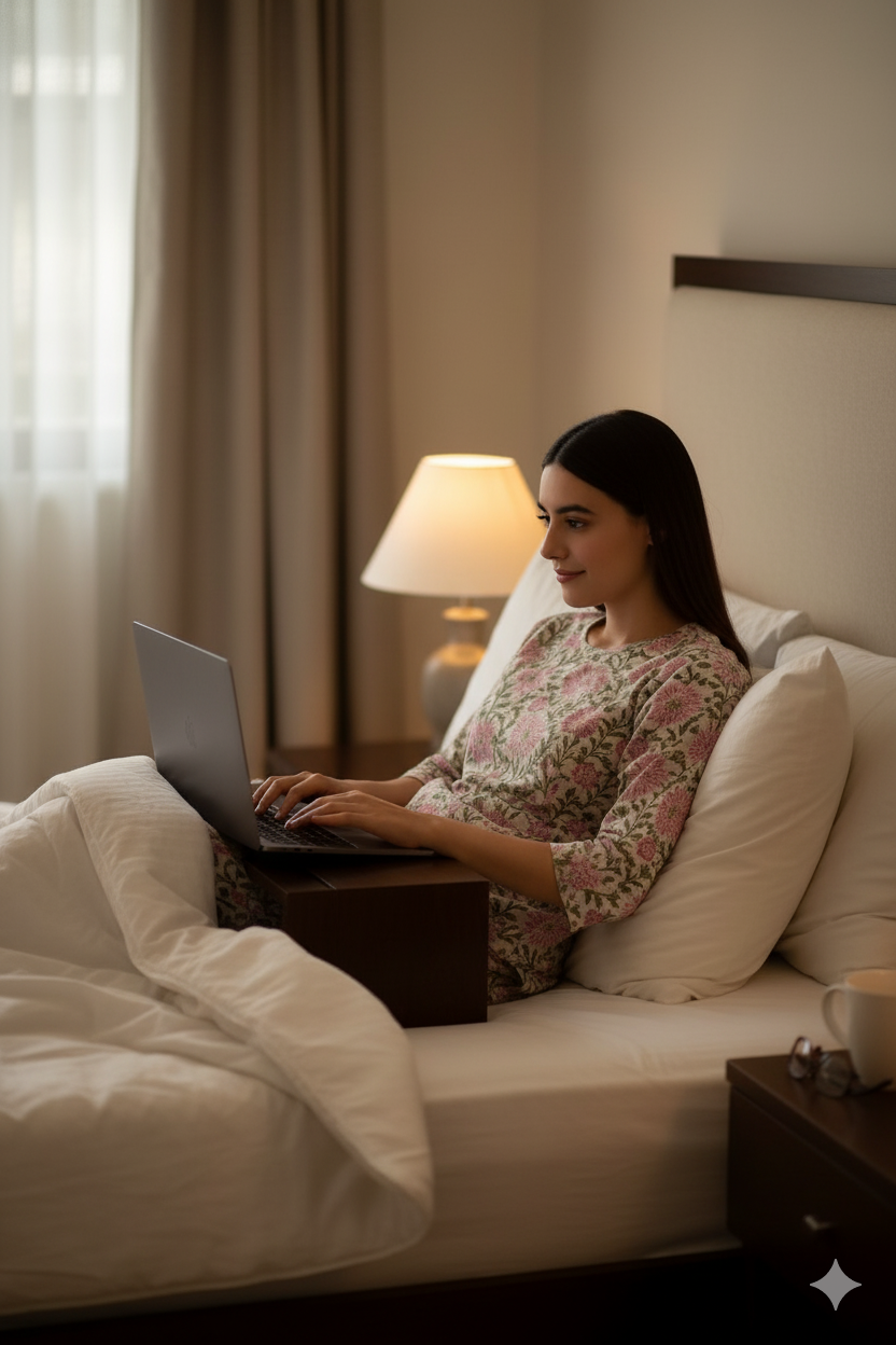 Drift into comfort with this pink floral hand block printed cotton night suit for women. This 2-piece loungewear set features a soft short kurti-style top and matching straight pants, crafted from 100% breathable cotton for a cozy and relaxed fit. The delicate floral print adds a touch of elegance, making it perfect for both sleep and leisure. Enjoy peaceful nights and effortless style with this beautiful cotton night suit from Natural Fab — where comfort meets timeless charm.