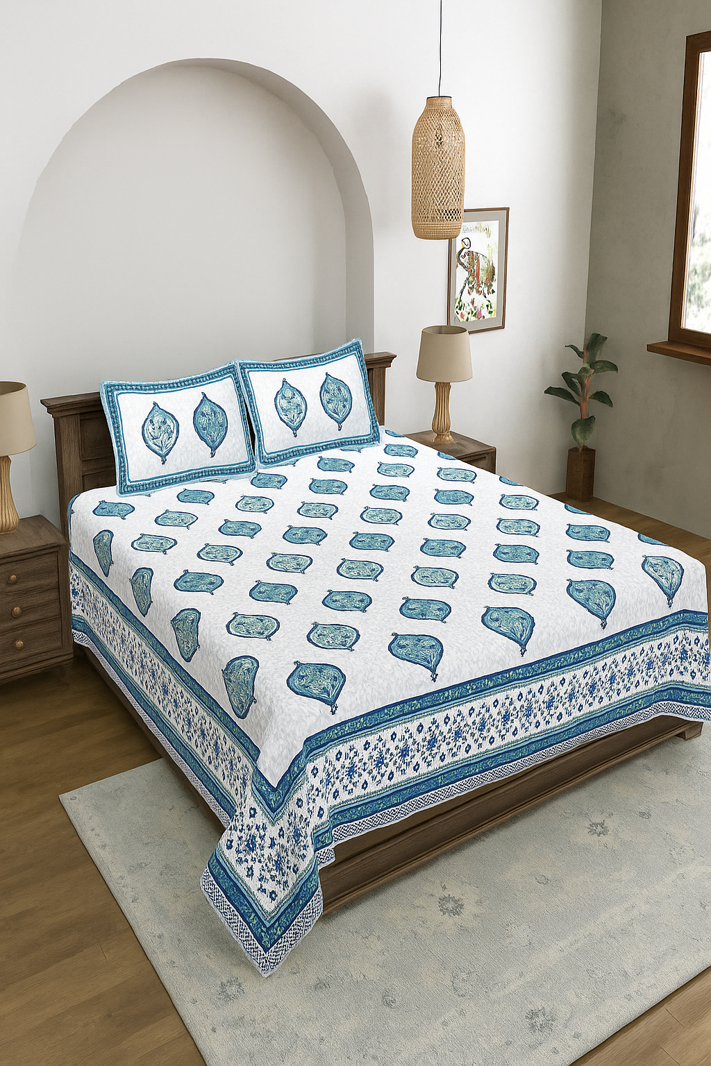 Premium Bagru Motif Double Bedsheet – Screen Print | Soft Cotton | 2 Pillow Covers