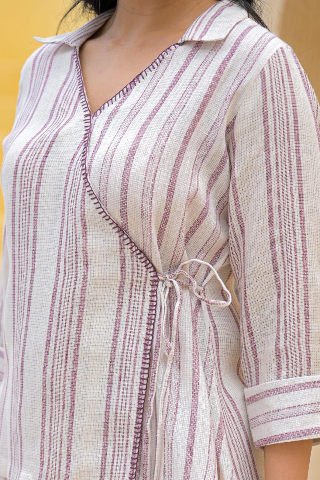 Color: Elegant cream base with subtle vertical stripes in muted tones, adding a touch of sophistication
