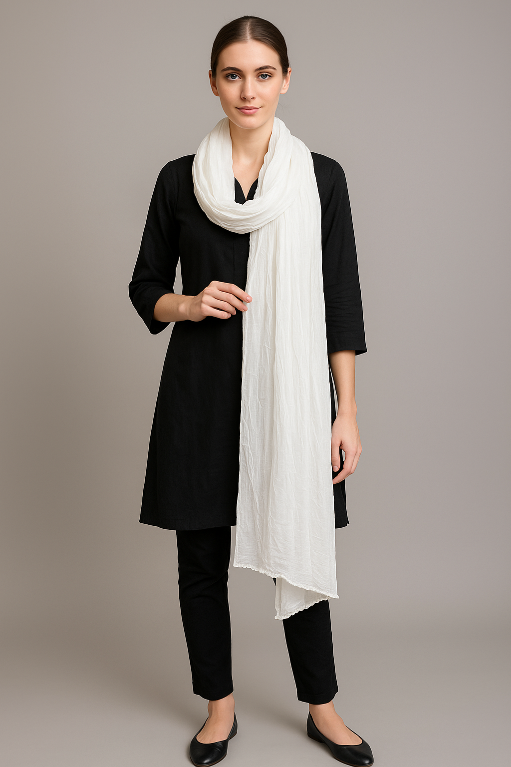White Cotton Mulmul Dupatta – Lightweight & Timeless