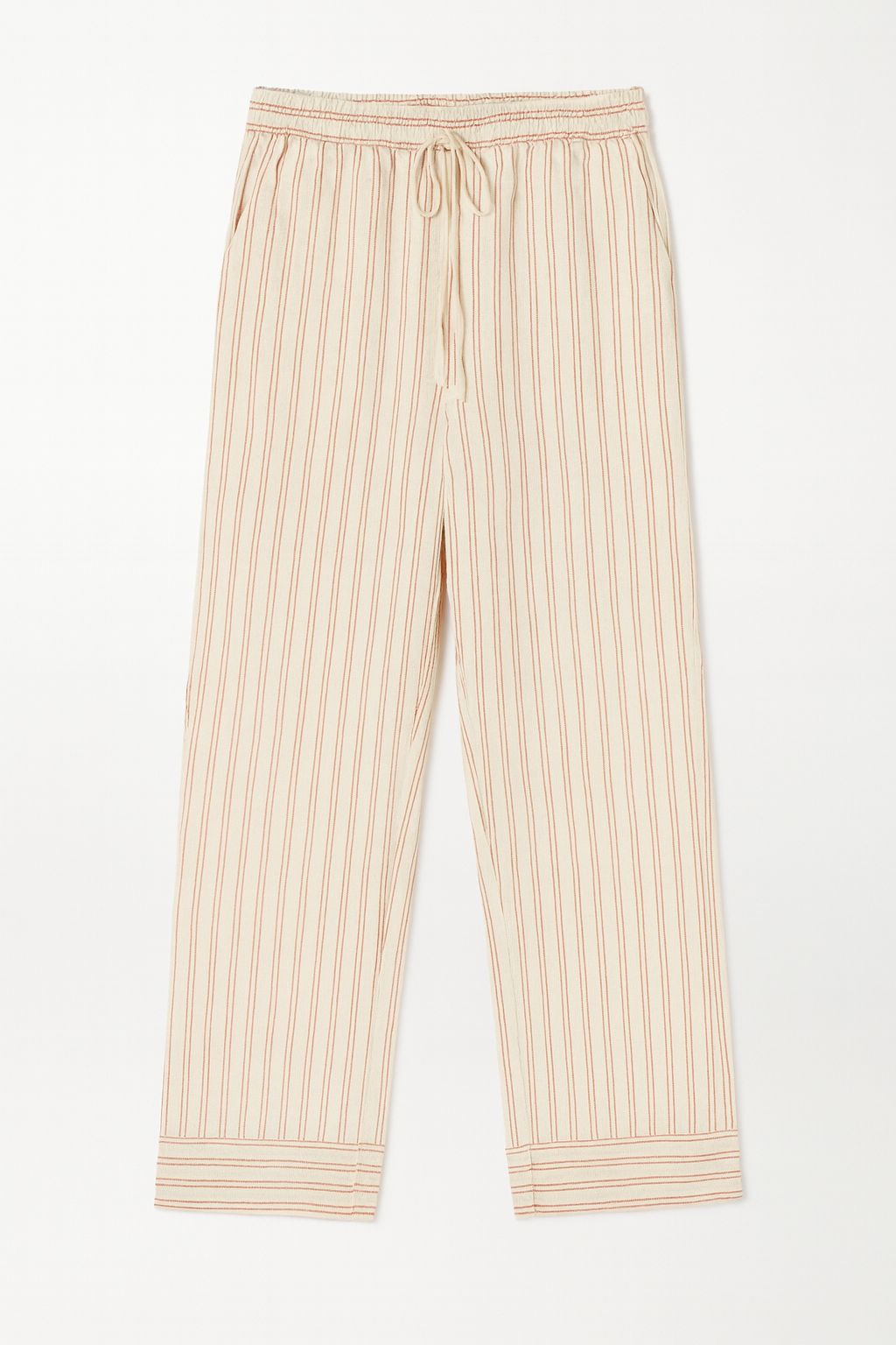 Women’s Off-White Cotton Kurti Set with Striped Pants – Elegant Ethnic Wear for Office & Festive Look