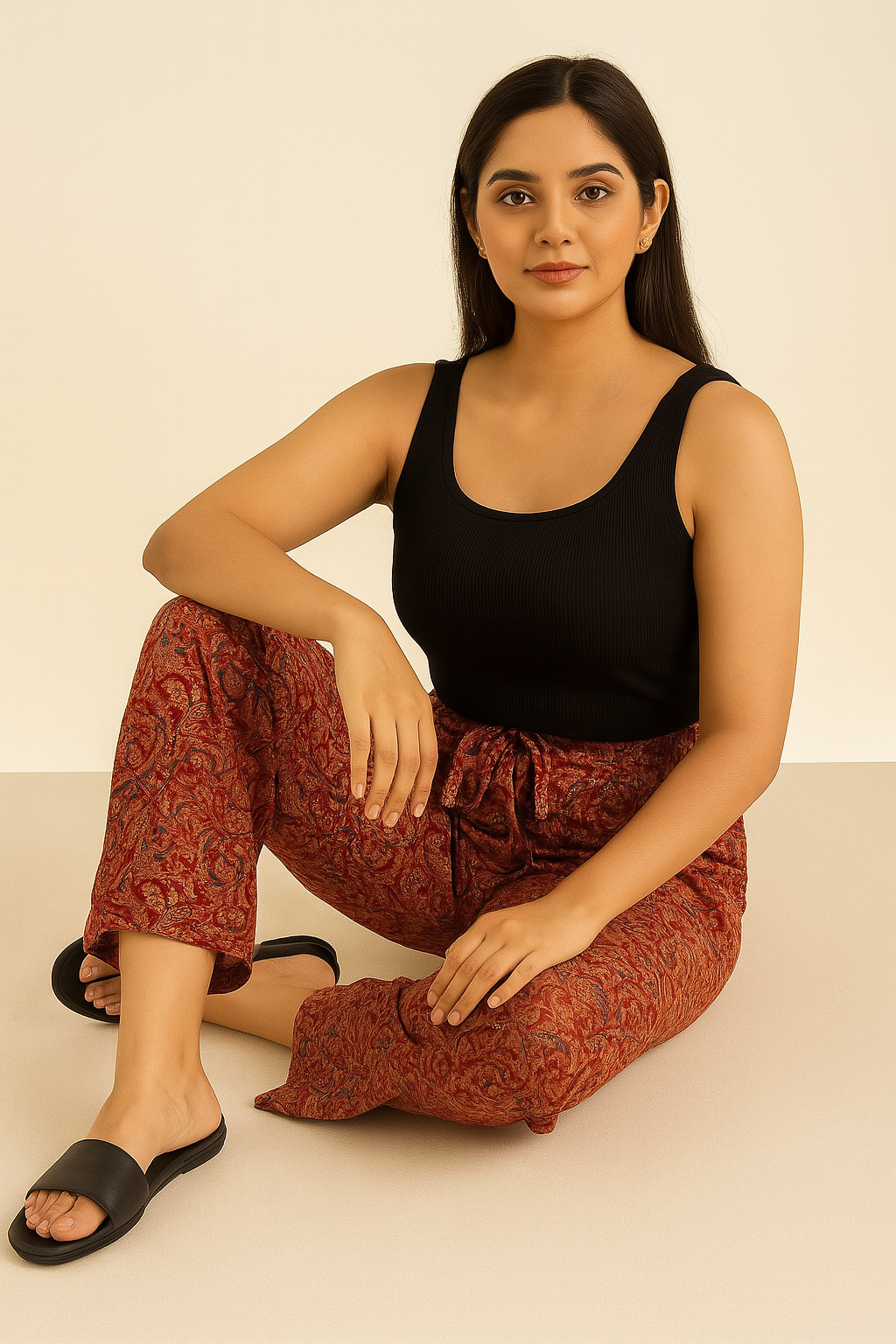 Step out in style with these red and mustard handblock printed cotton straight pants for women. Featuring intricate floral and paisley patterns, these breathable cotton trousers offer a relaxed fit and an adjustable drawstring waist for all-day comfort. Perfect for pairing with solid kurtas, crop tops, or tunics—ideal for festive wear, casual outings, or workwear with an ethnic twist.