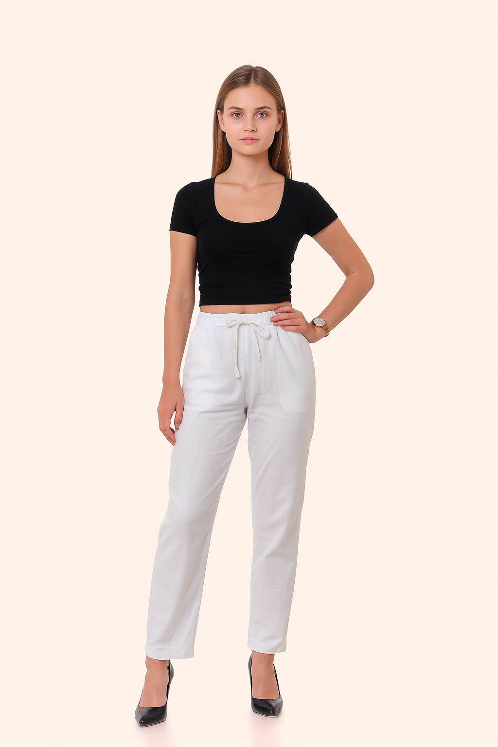 These stylish and comfortable khadi pants for women offer a relaxed yet chic look. Crafted from high-quality khadi fabric, they provide a breathable and lightweight feel, perfect for warm weather. The drawstring waistband ensures a customised fit, while the straight-leg design creates a flattering silhouette. These versatile pants can be dressed up or down, making them an ideal choice for work, casual outings, or weekend lounging. With their timeless style and exceptional comfort, these khadi pants are a must-have addition to any modern woman's wardrobe. Available in a range of sizes to suit different body types